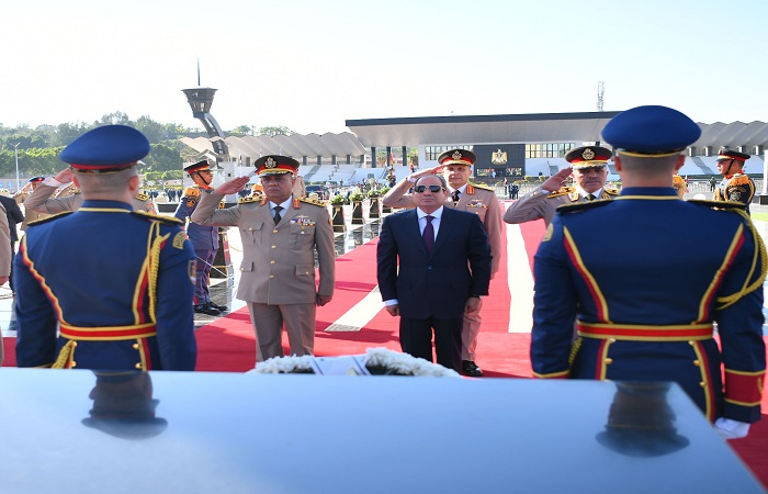 قام الرئيس عبد الفتاح السيسي القائد الأعلى للقوات المسلحة، صباح اليوم الخميس 23 أبريل، بوضع إكليل من الزهور على النصب التذكاري لشهداء القوات المسلحة وقبر الرئيس الراحل محمد أنور السادات، بمناسبة الذكرى الرابعة والأربعين لتحرير سيناءوصرح السفير محمد الشناوي، المُتحدث الرسمي باسم رئاسة الجمهورية، بأنه كان في استقبال السيد الرئيس عند وصول سيادته إلى منطقة النصب التذكاري لشهداء القوات المسلحة الفريق أشرف سالم زاهر القائد العام للقوات المسلحة وزير الدفاع والإنتاج الحربي، والفريق أحمد خليفة رئيس أركان حرب القوات المسلحة، حيث أدى حرس الشرف التحية وعزفت الموسيقى السلام الوطني عند وصول السيد الرئيس. وقام السيد الرئيس عقب ذلك بوضع إكليل الزهور على قبر الجندي المجهول لتعزف الموسيقى سلام الشهيد، ثم توجه سيادته إلى قبر الرئيس الراحل محمد أنور السادات لوضع إكليل الزهور وقراءة الفاتحةوأشار المُتحدث الرسمي إلى أن مراسم زيارة السيد الرئيس للنصب التذكاري شهدت حضور قادة الأفرع الرئيسية وعدد من قادة القوات المسلحة، بالإضافة إلى حضور المستشار هشام بدوي رئيس مجلس النواب، والمستشار عصام الدين فريد رئيس مجلس الشيوخ، والدكتور مصطفى مدبولي رئيس مجلس الوزراء، وفضيلة الإمام الأكبر الدكتور أحمد الطيب شيخ الأزهر الشريف، والبابا تواضروس الثاني بابا الإسكندرية وبطريرك الكرازة المرقسية، واللواء محمود توفيق وزير الداخلية، والدكتور صلاح سليمان وزير الدولة للإنتاج الحربي، والدكتور إبراهيم صابر محافظ القاهرة