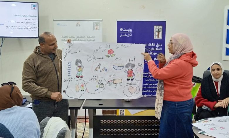 وهدفت الورشة التدريبية إلى بناء قدرات المتعاملين مع الأطفال في مرحلة الطفولة المبكرة، والتدريب على دليل الكفاءات للمتعاملين مع الأطفال من الولادة وحتى سن 6 سنوات، بمشاركة ممثلي الجهات الشريكة من وزارة التضامن الاجتماعي، ووزارة التربية والتعليم، ووزارة الصحة، ووزارة الثقافة، وممثلي وحدات حماية الطفل العامة.