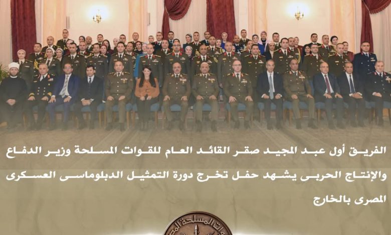 الفريق أول / عبد المجيد صقر يشهد حفل تخرج دورة التمثيل الدبلوماسى العسكرى المصرى بالخارج