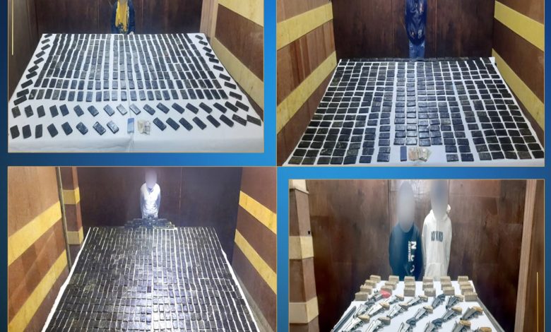 فى إطار مواصلة وزارة الداخلية توجيه الضربات الإستباقية للبؤر الإجرامية جالبى ومتجرى المواد المخدرة والأسلحة النارية غير المرخصة .. فقد أكدت معلومات وتحريات قطاع (مكافحة المخدرات والأسلحة والذخائر غير المرخصة ) بالتنسيق مع أجهزة الوزارة المعنية قيام بؤر إجرامية بنطاق عدد من المحافظات تضم (عناصر جنائية شديدة الخطورة) بجلب كميات من المواد المخدرة والأسلحة النارية غير المرخصة تمهيداً للإتجار بها. عقب تقنين الإجراءات تم إستهدافهم بمشاركة قطاع الأمن المركزى ، وقد أسفر التعامل عن مصرع (4 عناصر جنائية شديدة الخطورة – سبق الحكم عليهم بالسجن فى جنايتى ” إتجار بالمواد المخدرة – سلاح نارى”) بنطاق محافظة “قنا” وضبط باقى عناصر تلك البؤر .. وبحوزتهم (704 كيلو جرام من المواد المخدرة المتنوعة “هيدرو، حشيش ، آيس – شابو” – 75 ألف قرص مخدر – 34 قطعة سلاح نارى ” 3 بنادق آلية ، 6 بنادق خرطوش ، 25 فرد خرطوش) .. هذا وتقدر القيمة المالية للمواد المخدرة المضبوطة قرابة (105) مليون جنيه. تم إتخاذ الإجراءات القانونية.
