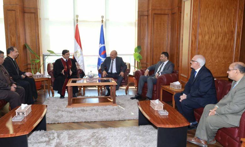 إستقبل اللواء أح هاني رشاد محافظ السويس بمكتبه قيادات الكنيسة بالسويس ،بحضور الدكتورمحمد علام نائب المحافظ واللواء عارف البركاوي السكرتير العام المساعد للمحافظة، والأب جيمي راعي الكنيسة الأنجيلية ، والأب أرسانيوس راعي كنيسة الأقباط الكاثوليك الراعي الصالح والأب جوزيف راعي كنيسة الآباء الفرنسيسكان .وذلك لتقديم التهنئة بمناسبة تولي سيادته محافظا للسويس.