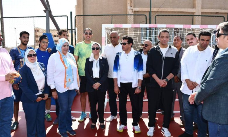 خلال جولته بمحافظة السويس.. وزير الشباب والرياضة ومحافظ السويس يفتتحان قاعة تخاطب وملعب أكريليك بمركز شباب الجناين