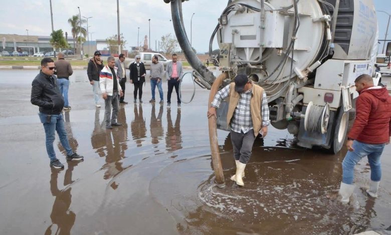 رئيس مدينة السويس الجديدة تتابع أعمال شفط المياه وانتشار فرق الطوارئ لمواجهة التقلبات الجوية