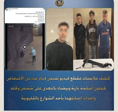 كشفت الأجهزة الأمنية بمديرية أمن القليوبية ملابسات مقطع فيديو تم تداوله بمواقع التواصل الإجتماعى تضمن قيام عدد من الأشخاص يحملون أسلحة نارية وبيضاء بالتعدى على شخص ونجله وإحداث إصابتهما بأحد الشوارع بالقليوبيةوبالفحص تبين أنه مساء 19 الجارى تبلغ لمركز شرطة القناطر الخيرية من إحدى المستشفيات بإستقبالها (مالك مصنع سلك ، ونجله سن5 – مصابان “برش خرطوش وجروح قطعية”)، وبسؤال المجنى عليه الأول إتهم (خال زوجته – مقيم بدائرة المركز) بإرتكاب الواقعة على النحو المشار إليه بالإشتراك مع أنجاله بسبب خلافات أسرية بينهم.وأمكن تحديد وضبط مرتكبى الواقعة (4 أشخاص – مقيمين بدائرة المركز).. وبمواجهتهم إعترفوا بإرتكاب الواقعة على النحو المشار إليه لذات الخلافات، وضُبط بحوزتهم الأسلحة المستخدمة فى التعدى (بندقية خرطوش – فرد خرطوش – سلاح أبيض).وتم إتخاذ الإجراءات القانونية