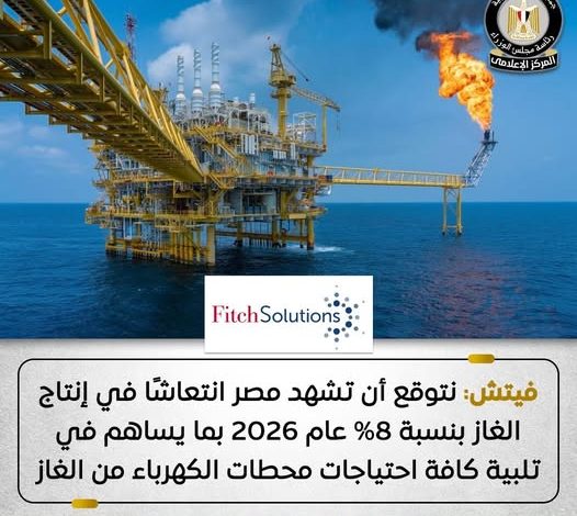 فيتش تتوقع زيادة إنتاج الغاز المصري في تقريرها الصادر في فبراير 2026