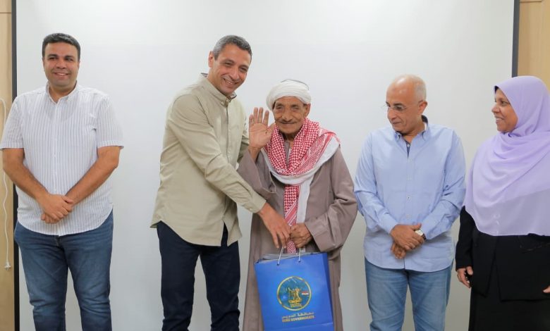 في اللقاء الإسبوعي للقيادات التنفيذية محافظ السويس يسلم شهادات محو الأمية لأربع دارسين أعمارهم (97و85و80و66) عاما