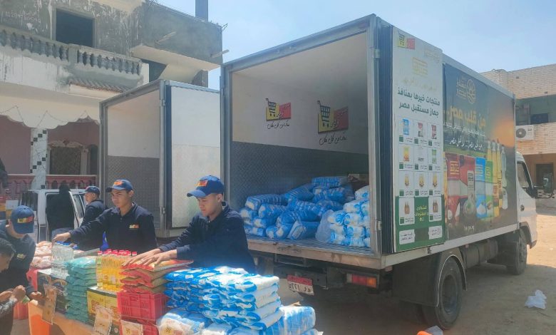 قافلة مواد غذائية بقرية جنيفة بأسعار مخفضةوتواجد السيارة المتنقلة لصرف مقررات التموين