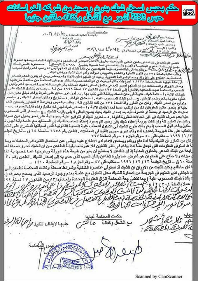 وقد حصل المواطنون على مئات الاحكام ضد المالك ولكنها لم تنفذ جميعها ، بما فيها قضايا الشيكات بدون ارصدة في البنوك