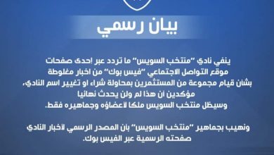 نفى مجلس إدارة نادي منتخب السويس، برئاسة محمد هلال في بيان رسمي بالصفحة الرسمية للنادي بموقع التواصل الاجتماعي “فيس بوك”،…