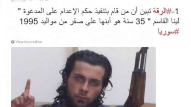 داعشي يعدم امه امام حشد كبير فى مدينة الرقة