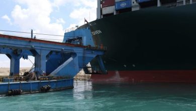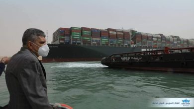 مواصلة أعمال تعويم السفينة الجانحة بقناة السويس.وتعليق حركة الملاحة مؤقتا