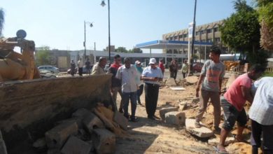 رئيس حى السويس ومديرين الادارات يقومون بتوسعة شارع الجلاء