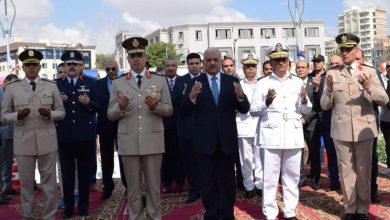 محافظ السويس وقائد الجيش الثالث ومديرالامن والقيادات يضعون أكاليل الزهور على النصب التذكاري
