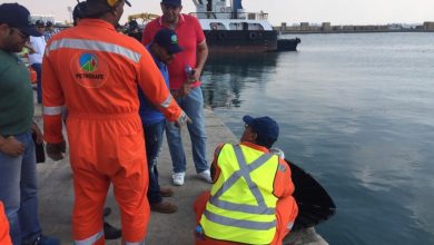 تنفيذ فعاليات التدريب العملي للتجربة الوهمية للتلوث الترولي ( السويس ١) بميناء الزيتيات، السويس.