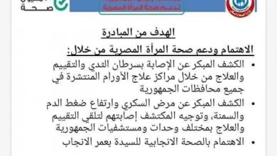 المرحلة الثانية من مبادرة مكافحة سرطان الثدي تبدا من اليوم فى المحافظات المشار ليها من سن ١٨ فيما فوق من خلال…