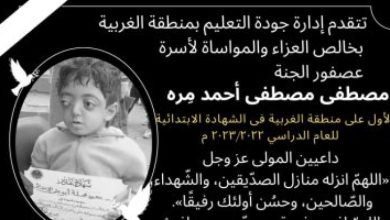 توفى الطالب مصطفى مصطفى أحمد مره الأول على الشهادة الابتدائية الازهرية للمكفوفين بمحافظة الغربية، بعد معاناه مع المرض، قبل أيام…
