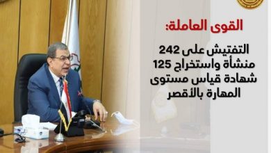 القوى العاملة: التفتيش على 242 منشأة واستخراج 125 شهادة قياس مستوى المهارة بالأقصر
