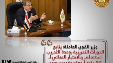 يتابع محمد سعفان، وزير القوى العاملة، سير عملية التدريب بوحدات التدريب المتنقلة بالمحافظات، في إطار مبادرة “حياة كريمة” التي…