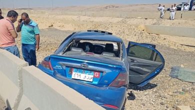 اصابة خطرة لاثنين من المواطنين في حادث انقلاب سيارة ملاكي بطريق السخنة