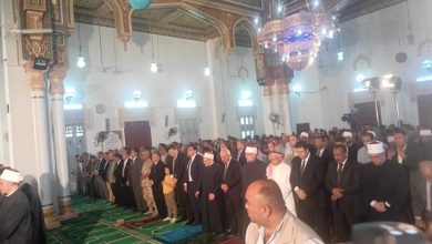 محافظ السويس ومفتى الجمهورية و وزير الاوقاف يؤدون صلاة الغائب بمسجد بدر