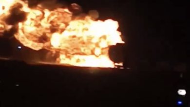 اشتعال النيران في سيارة نقل محملة مواد بترولية اثر انقلابها بطريق السخنة