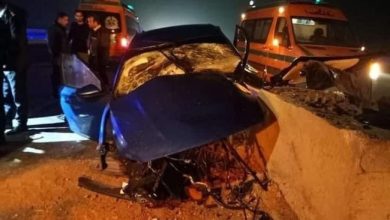 وفاة 3 واصابة شخص في حادث تصادم سيارة ملاكي بالحاجز الخرساني طريق القاهرة السويس