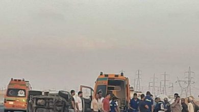 وفاة واصابة شخصين اثر اصطدام سيارة ربع نقل وانقلابها بطريق القاهرة _السويس