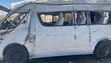مصرع سيدة واصابة ١١ في حادث انقلاب سيارة ميكروباص بطريق جنيفة_السويس