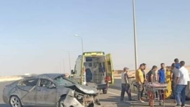 وفاة واصابه ٤ اشخاص في حادث انقلاب سيارة ملاكي بطريق السخنة _السويس