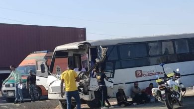 اصابة ٧ اشخاص في حادث تصادم اتوبيس عمال مع سيارة نقل بمقطورة بطريق السخنة -السويس