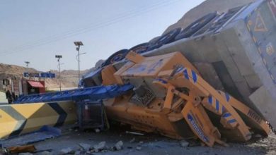 مصرع ٢ وإصابة ٤٥ عامل في حادث تصادم ونش مع أتوبيس عمال بطريق السخنة_الجلالة