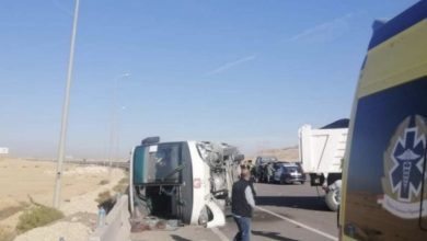 بالاسماء : ٢٢ مصابا نتيجة انقلاب أتوبيس شركة سيراميكا كليوباترا باترا بطريق القطامية