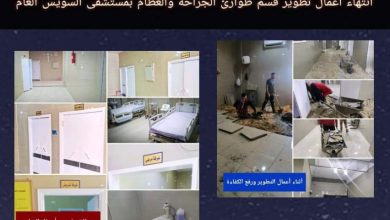 انتهاء أعمال تطوير البنيه التحتيه بقسم طوارئ الجراحة والعظام بمستشفى السويس العام