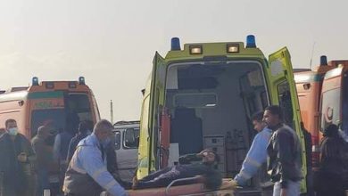 بالصور : إصابة ١١ مواطن في حادث تصادم سيارتين ميكروباص بطريق السويس الاسماعيلية