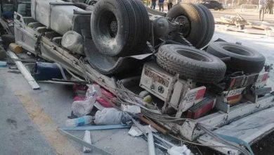 مصرع شخصين وإصابة 5 آخرين في حادث انقلاب سيارة نقل بالسويس