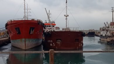بالصور: تسريب زيت بميناء الزيتيات من ناقلة بترول لشركة التعاون وشئون البيئة يرصد المخالفة