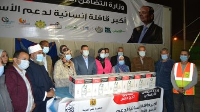 وصول أكبر قافلة مواد غذائية من صندوق تحيا مصر للاسر الاولي بالرعاية السويس