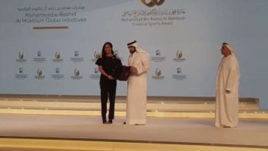فريدة عثمان تتسلم جائزة ال مكتوم االابداع الرياضى
