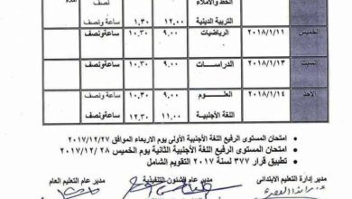 كاب:احمد مراد تبدأ صباح غد الأربعاء 10 / 1 / 12018 بمحافظة السويس أعمال امتحانات الفصل الدراسي الأول للعام الدراسي…