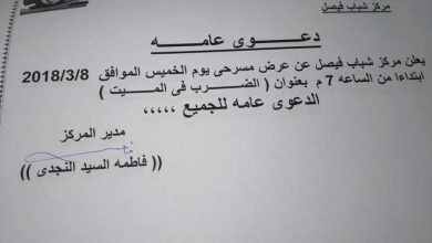 كتب:احمد مراد بنظم قصر ثقافة فيصل عرضا مسرحيا بعنوان(الضرب فى الميت) و ذلك فى تمام الساعة السابعة مساء الخميس الموافق…
