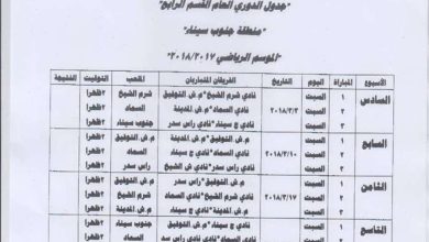 متابعة:احمد مراد تنطلق فى الثانية بعد ظهر الغد لقاءات الاسبوع الاول لدورى الدرجة الرابعة (مجموعة السويس و جنوب سيناء)موسم 2017/2018…