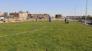 تكثيف العمل للانتهاء من انشاء حدائق عامة ومسطحات خضراء بطريق صلاح نسيم بالسويس