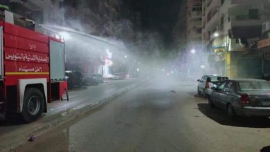 في الفترة المسائية تطهير شوارع مدن الرحاب والشهداء والفردوس والنهضة بحي عتاقة لمجابهة فيروس كورونا بمحافظة السويس