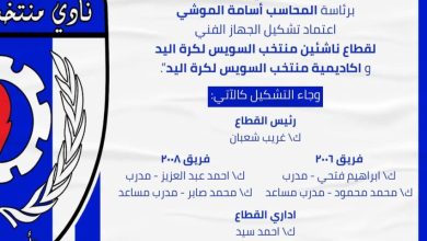 اعتمد مجلس إدارة نادي منتخب السويس برئاسة المحاسب اسامه الموشى تشكيل الأجهزة الفنية لقطاع الناشئين و أكاديمية كرةة اليد بعد…