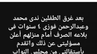 اعلن نائب السويس طلعت خليل استقالته من البرلمان المصري على صفحته الشخصية بموقع التواصل الاجتماعي الفيس بوك عقب وفاة طفلين…
