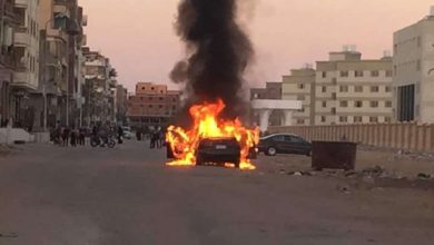 صورة اليوم .. اشتعال النيران بسيارة ملاكي امام جامعة السويس بمدينة السلام
