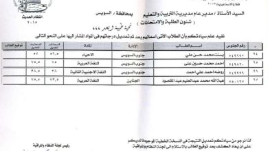 بالاسماء..ننشر نتيجة الدفعة الأولى من تظلمات الثانوية العامة بالسويس