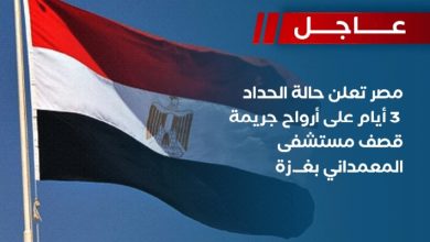 عاجل..مصر تعلن حالة الحداد 3 أيام على أرواح جريمة قصف مستشفى المعمداني بغزة