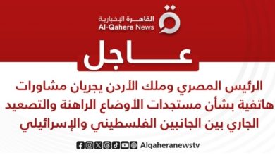 عاجل| الرئيس المصري وملك الأردن يجريان مشاورات هاتفية بشأن مستجدات الأوضاع الراهنة والتصعيد الجاري بين الجانبين الفلسطيني والإسرائيلي .