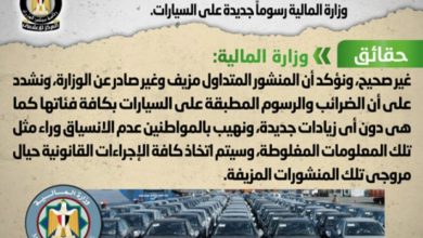 نفى المركز الإعلامى لمجلس الوزراء صحة ما يتم تداوله من منشور يزعم فرض وزارة المالية رسوماً جديدة على السيارات. وتواصل…